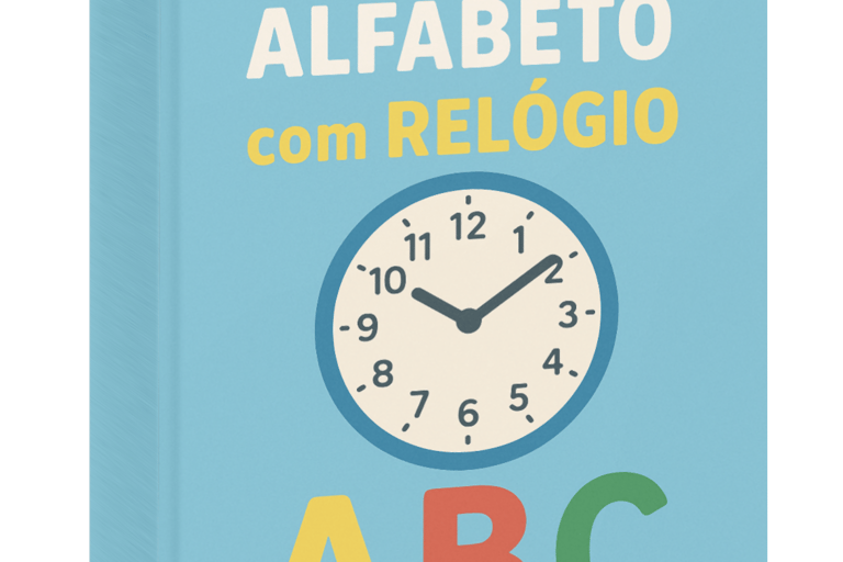 Caderno interativo que ensina as letras do alfabeto junto a um relógio, promovendo a leitura e noções de tempo de forma lúcida.